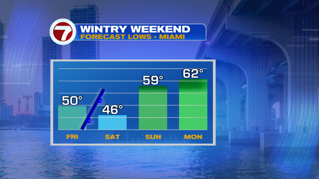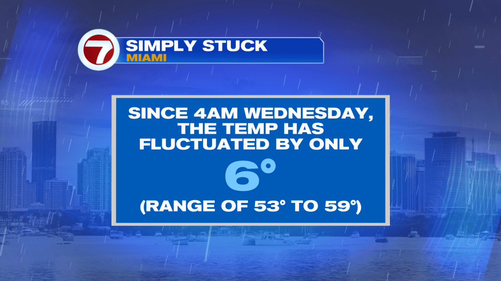 For more than 24 hours since early Wednesday, temperatures have been practically stuck, only fluctuating within a 6F temperature range in the mid to upper 50s at Miami.