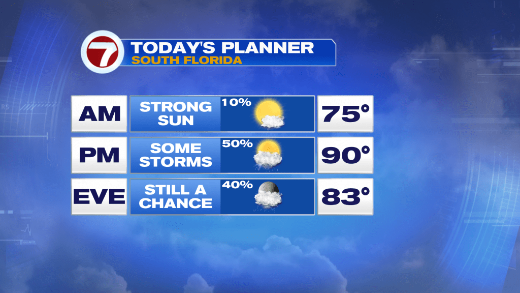 Therefore, look for strong morning sunshine followed by afternoon storms developing inland and pushing toward the coast. High temperatures will range in the upper 80’s to low 90’s.