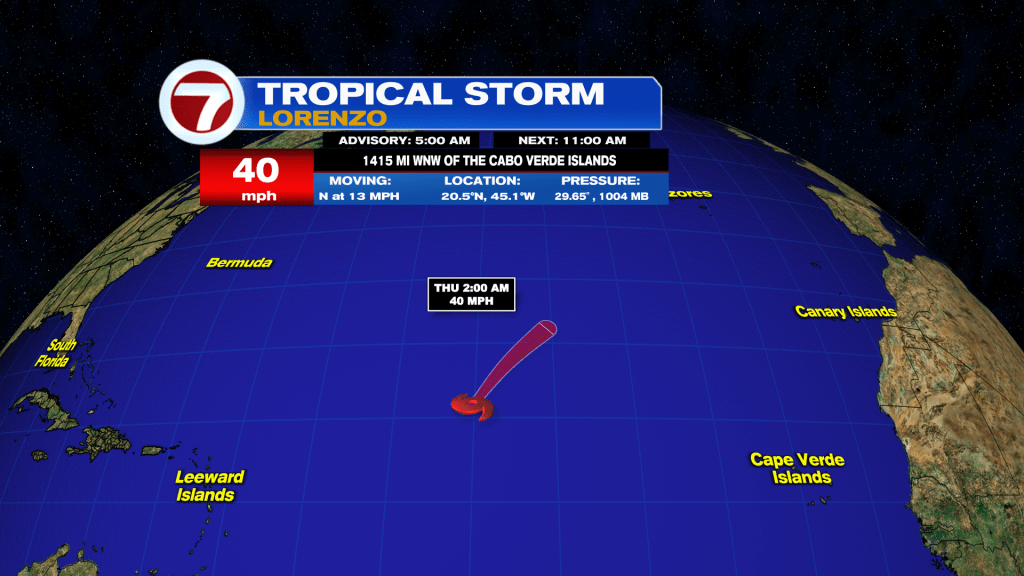In the tropics we only have Tropical Storm Lorenzo and it is barely holding on. The National Hurricane Center is stating that it should fall apart in the middle of the Atlantic by Thursday.