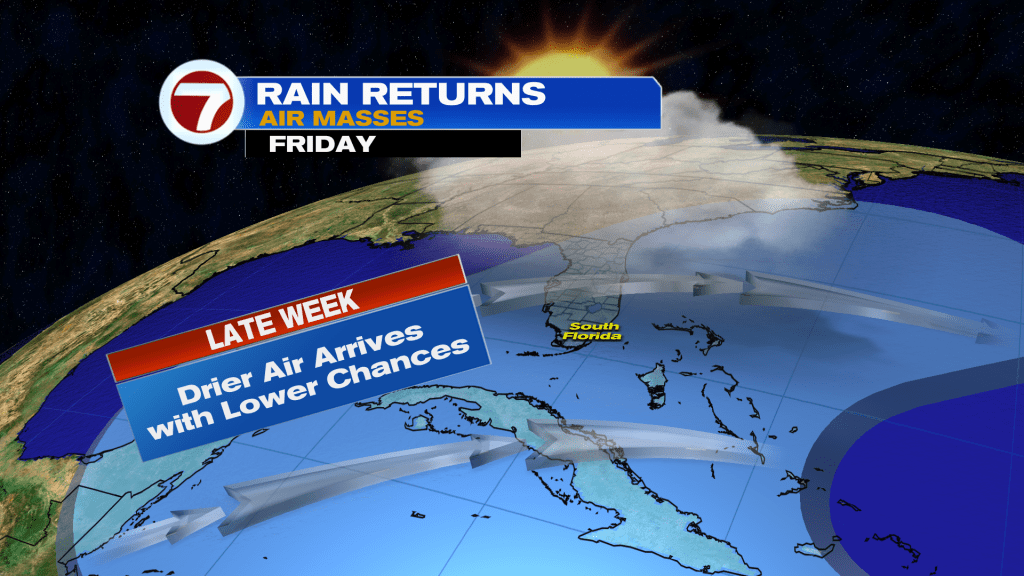 Drier air arrives late week to lower our rain chances, but temperatures ramp up into the upper 80’s this weekend!