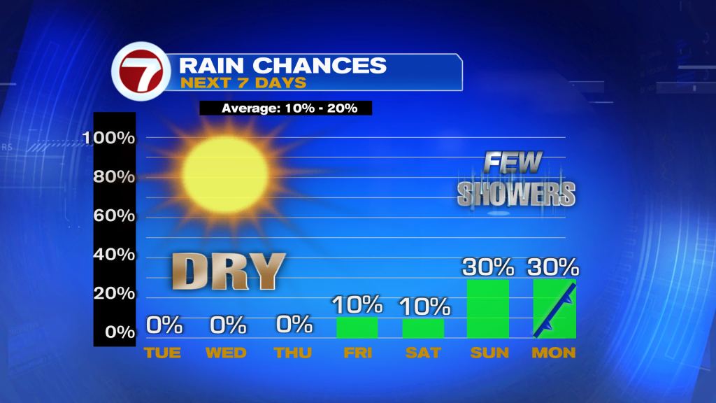Later this week, a weak cold front approaches on Thursday but looks mostly uneventful, with little to no rain and no major temperature changes. Looking ahead to the weekend, a stronger cold front could bring a better shower chance and at this point with most of South Florida in a moderate to severe drought, we will take whatever we can get.