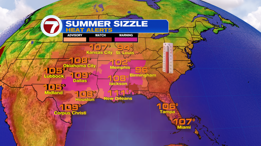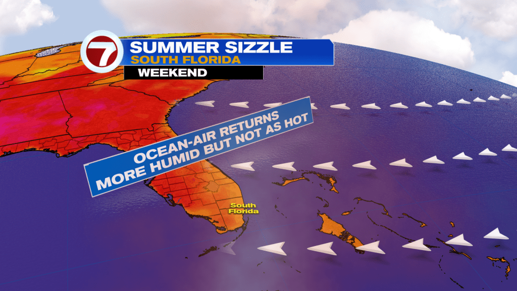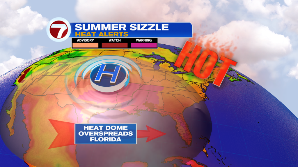 Feels-like temperatures with the high humidity will range from 104-110F across South Florida. It’s all thanks to a heat dome centered over the Gulf Coast states, unleashing dangerous heat to a large portion of the country.