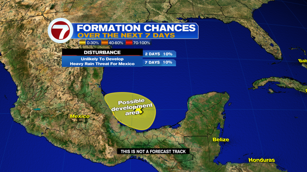 There is also a disturbance over the Bay of Campeche that only has a 10% chance of developing and it travels toward Mexico late-week.