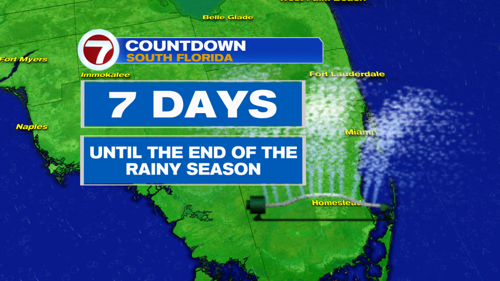 This is quite timely because South Florida’s rainy season does end in 1 week, which is when daily rain chances and rainfall start to decrease!