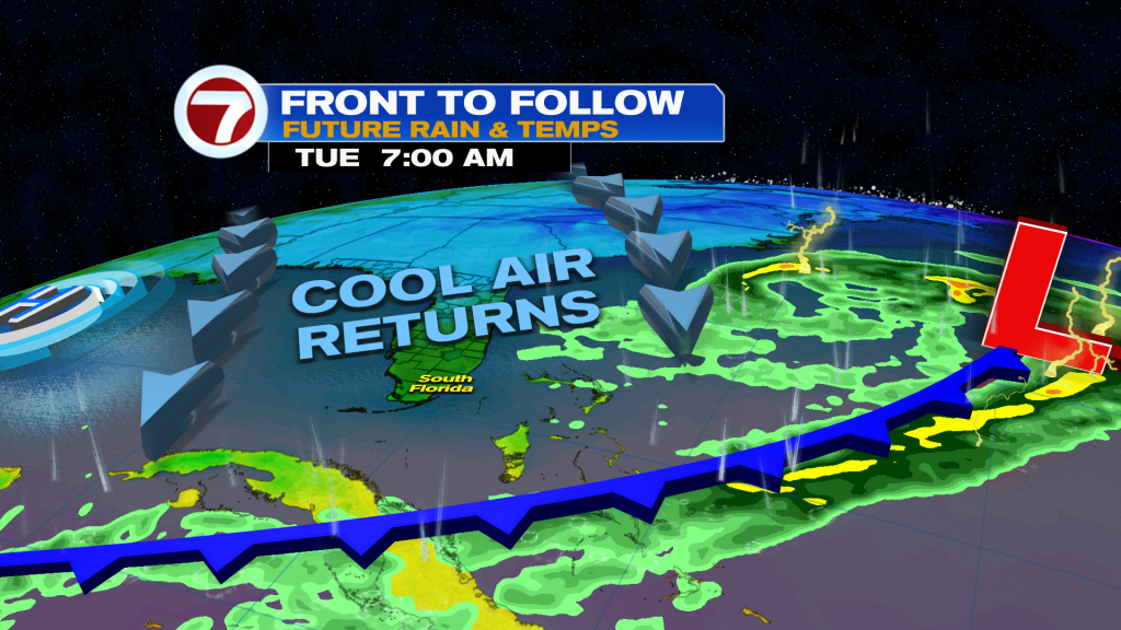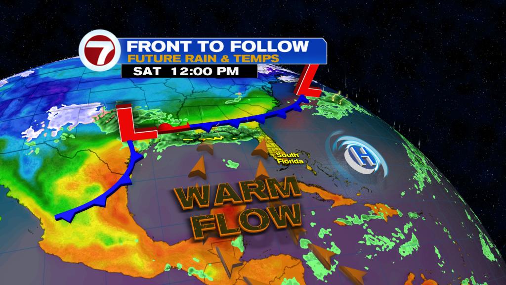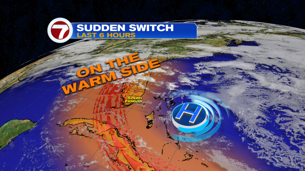 We can thank high pressure moving away from South Florida, now placing us on “its warm side.”