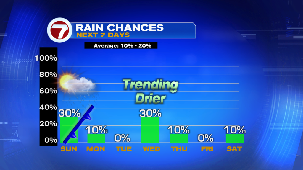 Enjoy that because temperatures and humidity gradually climb throughout the week with highs back in the mid 80s by next weekend along with moderate humidity levels.