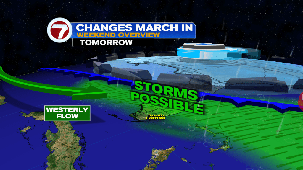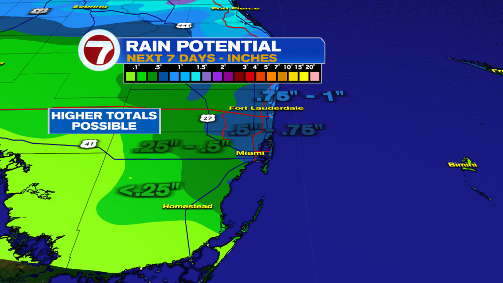 Then come Sunday, it will be a fairly similar story. Despite the front having crossed early in the day while the breeze builds out of the northeast, scattered to potentially numerous showers and downpours are expected, especially in Miami-Dade based off the current model guidance.