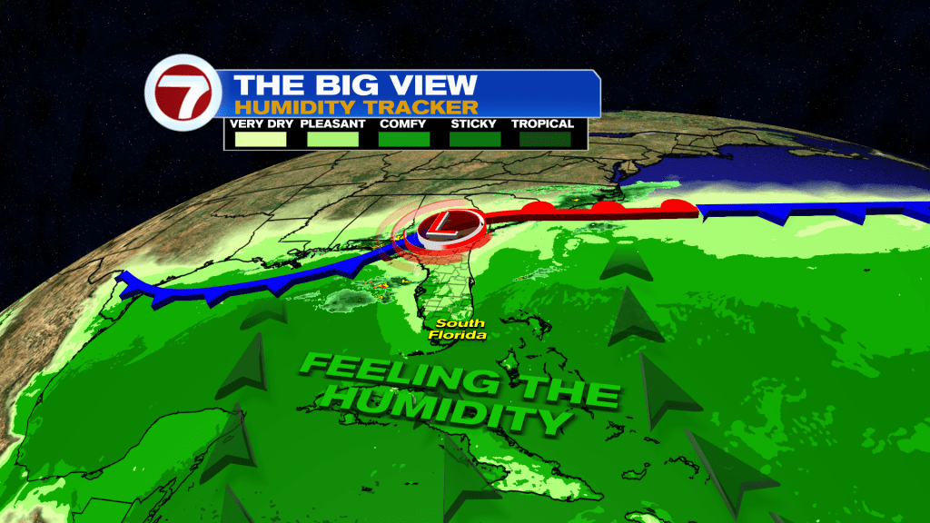 The main culprit is a weakening front sliding south across Florida, drawing in more moisture and therefore higher chances for rain.