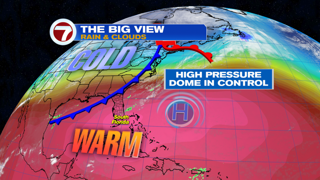 Today South Florida can expect more changes. A front will drift south across the state and even though it will come close to South Florida, it is forecast to stall north of us. This will allow for a few spotty showers to develop. Not everyone will see rain today. As a matter of fact, most of South Florida should be dry. Afternoon high temperatures will once again reach the mid to lower 80s but will feel a bit warmer because of the added humidity. And while there will still be a breeze this afternoon, wind speeds will not be as strong as they were the last two days.