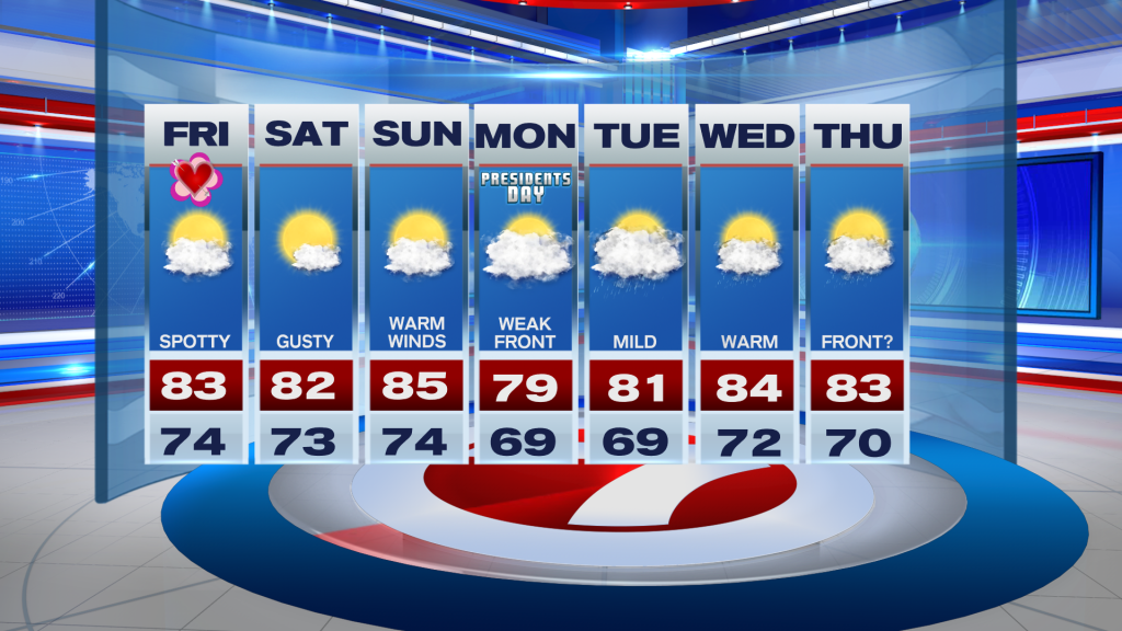 Hopefully everyone had a great week! February so far has been a warm month for South Florida as afternoon high temperatures each day have reached to the 80s. But even though we dealt with unusual above-average temperatures, at least humidity levels have been somewhat comfortable. Until yesterday. On Thursday, South Florida felt more muggy and it was felt early this morning as well as it was evident that there was a bit more moisture that had crept into the forecast. And that moisture was also visible in the form of shower activity that we saw early this morning over the Atlantic & across the Upper Florida Keys. Temperatures once again were in the 70s to start the day and it looks like we are well on our way for another warm one.