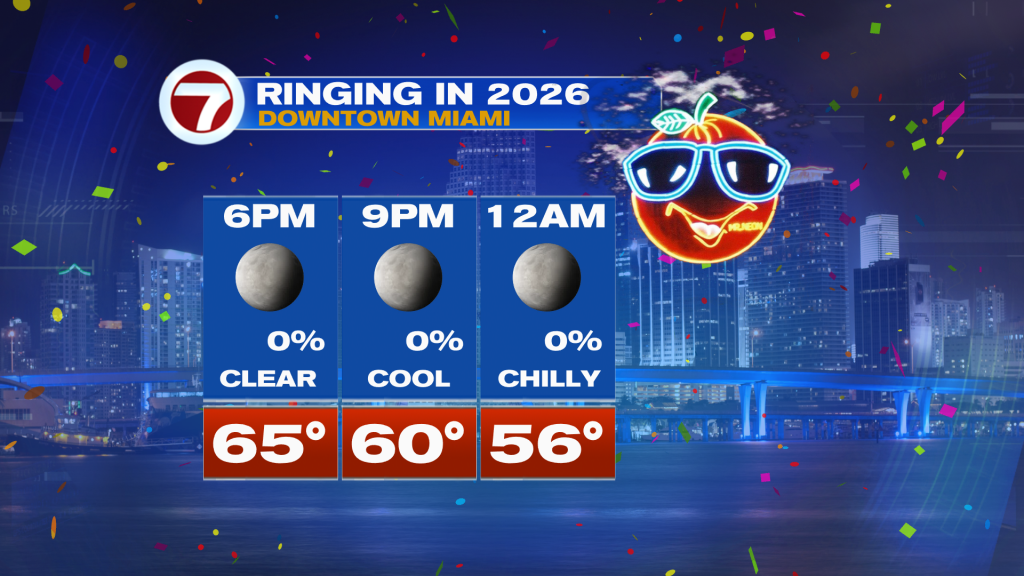 On the last day of 2025, all of South Florida will be waking up to much cooler conditions in the 40s and 50s. High temperatures will struggle to warm on Wednesday (New Years Eve), remaining mostly in the upper 60s for many. If you plan on ringing in the new year here in South Florida, be sure to bundle up, especially if your New Year’s Eve plans involve being outdoors. The first day of 2026 looks to begin just like 2025 ended, on a chilly note. Morning temperatures will once again be in the 40s and 50s while our afternoon high temperatures on the first of the year will struggle to even hit 70°.