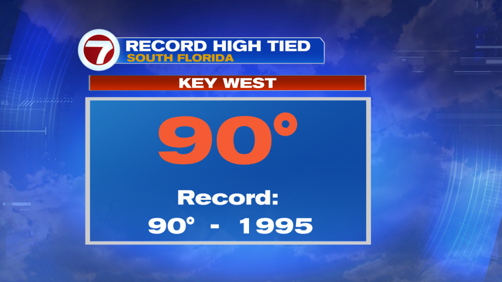 The heat was also felt in the Keys with the Southernmost City equaling the all time high for the date from 1995.