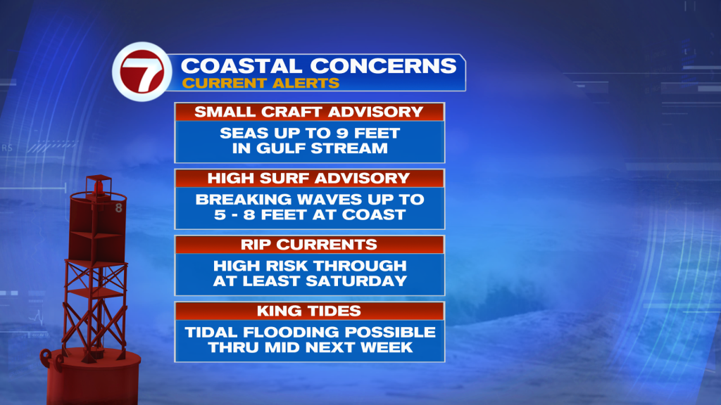 With this onshore flow and the King Tides in place, a Coastal Flood Statement is also in effect for minor saltwater flooding during times of high tide.