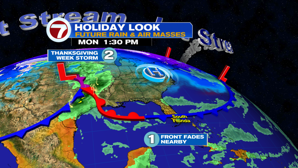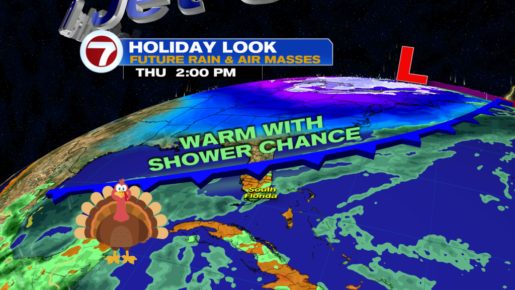 It’s not until the end of the week around the Thanksgiving time frame when a front will approach. The timing and how far south this feature will get will make all the difference with the holiday forecast.