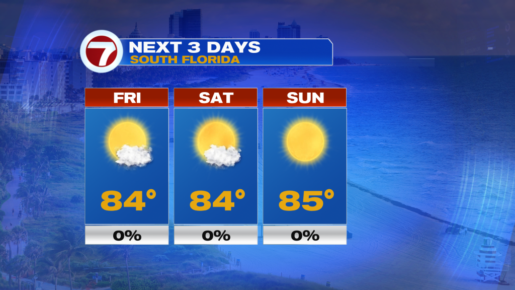 This means the next few days are looking stunning with warm high temperatures in the mid 80s, mild lows in the upper 60s to low 70s, pleasant humidity levels and mostly sunny skies.