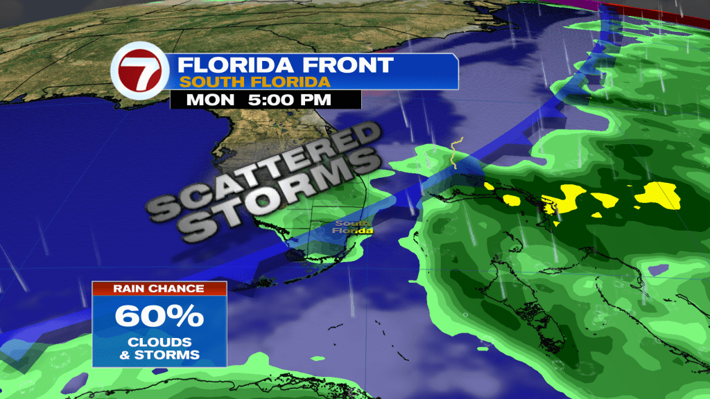 This is all thanks to a front which will arrive on Monday, ushering in more clouds and scattered showers into South Florida on Monday to begin the new week. Thankfully, these showers and storms will get a push from this front and are not expected to sit over a particular location, dumping inches upon inches of heavy rain like what Fort Lauderdale saw on Wednesday.