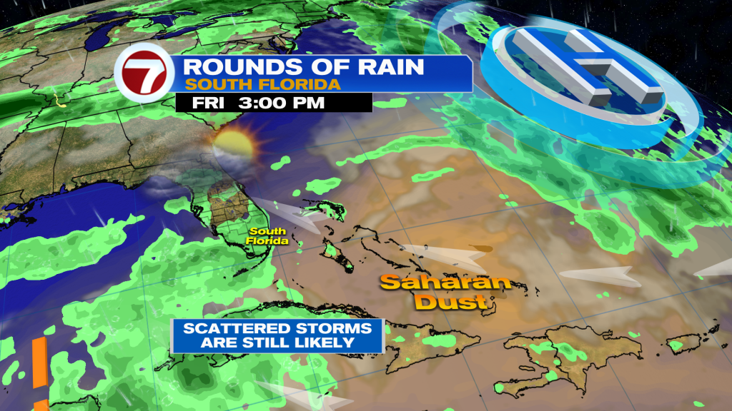 More Saharan dust seems to settle into the region for the weekend and that could bring down rain chances.