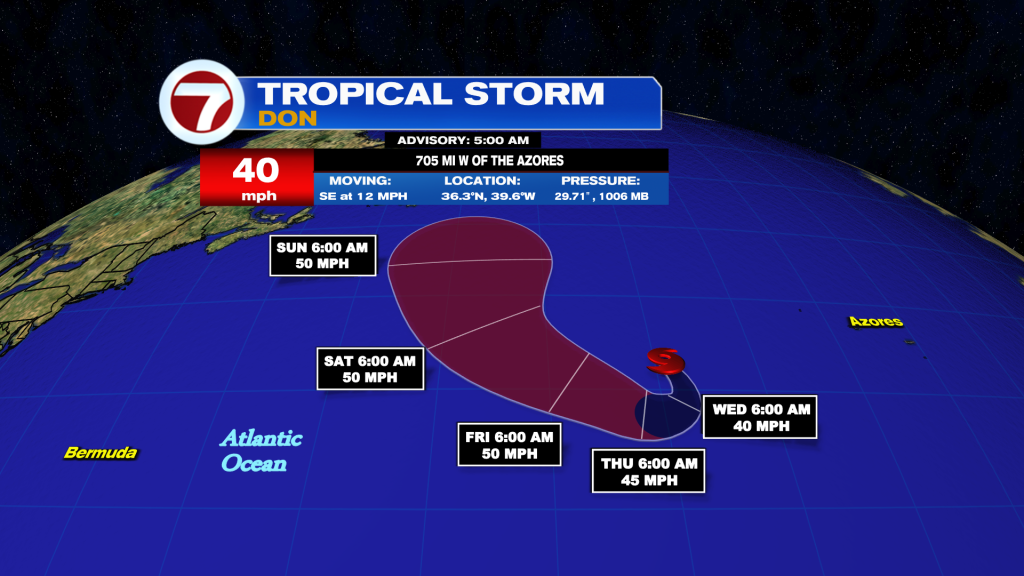 Today in the Tropics: Don is a tropical storm likely to strengthen slightly more remaining over the Central Atlantic.
