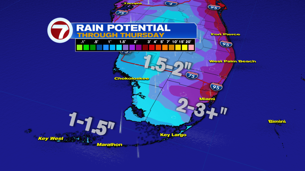 By next weekend, parts of South Florida could be looking at more than 2-3 inches of rainfall, so flooding will definitely be a concern through much of the week.