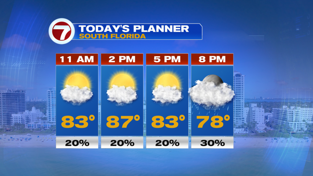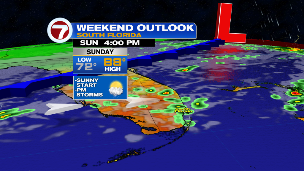 This will mark the start of a rather soggy stretch of weather for the upcoming week. A front will move through South Florida and stall nearby early next week, allowing for more clouds around and scattered showers. Isolated thunderstorms and heavy rain will also be possible.