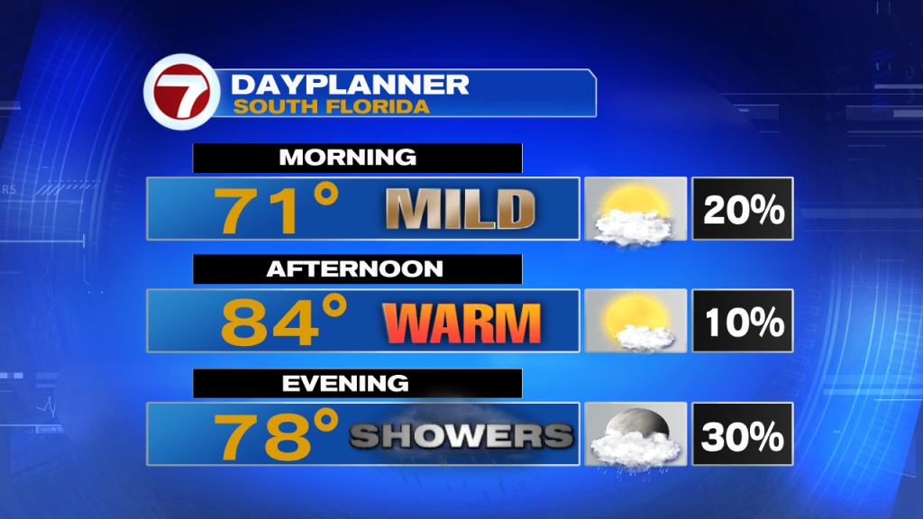 Looking ahead, the weak front mentioned above finally clears South Florida by early Tuesday. Temperatures will still remain warm to start the week. By mid-week the front will finally be south of our area and even though South Florida is not expecting a significant cool down this time, humidity levels will drop a bit and our temperatures will finally be a bit closer to what’s typical for this time of year. While a few showers can’t be ruled out through the first half of the work week, lower humidity and slightly drier conditions are expected as we round the corner into the second half of the week. Fast forward to the end of the week, it looks like our winds will increase and will once again veer off the water, which means a few showers will be possible to round up the work week.