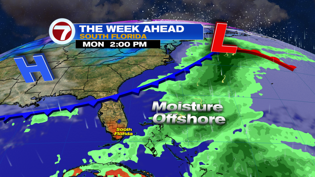 A disturbance will near South Florida tonight into tomorrow morning, which could lead to a spotty shower or two but we will remain mostly dry otherwise with most of that moisture offshore.