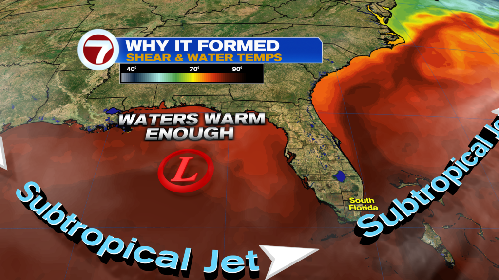 This system managed to develop because it was at the right place and time. It was located to the North of some strong upper-level winds and over warm waters in the 80’s that helped it form into the seasons second tropical system.