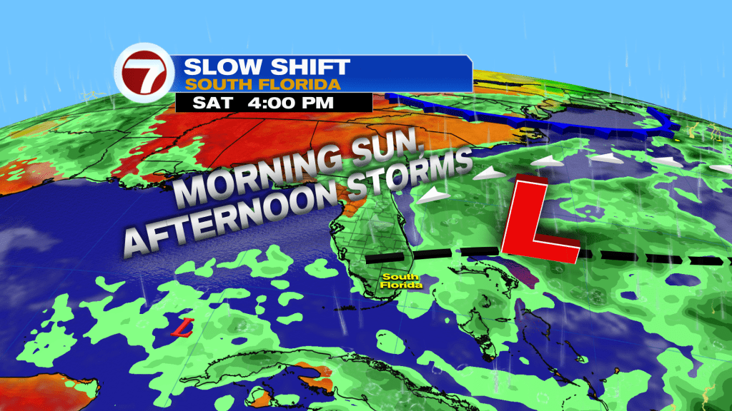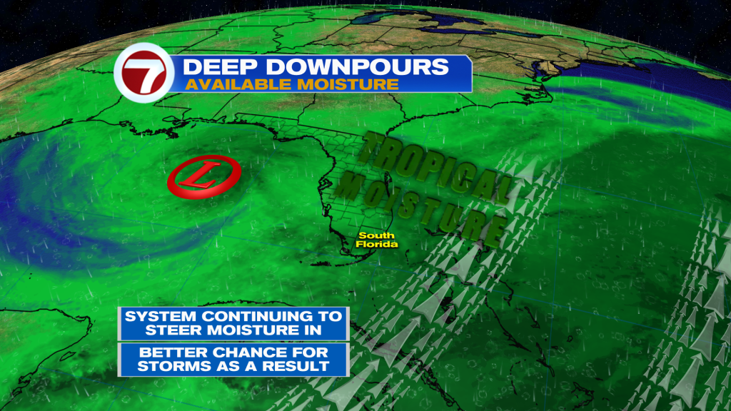 However, South Florida will have “No direct” impacts from Tropical Depression #2, but rather indirect impacts as deep available moisture will be present. This will help fuel showers and storms each afternoon/evening through the weekend.