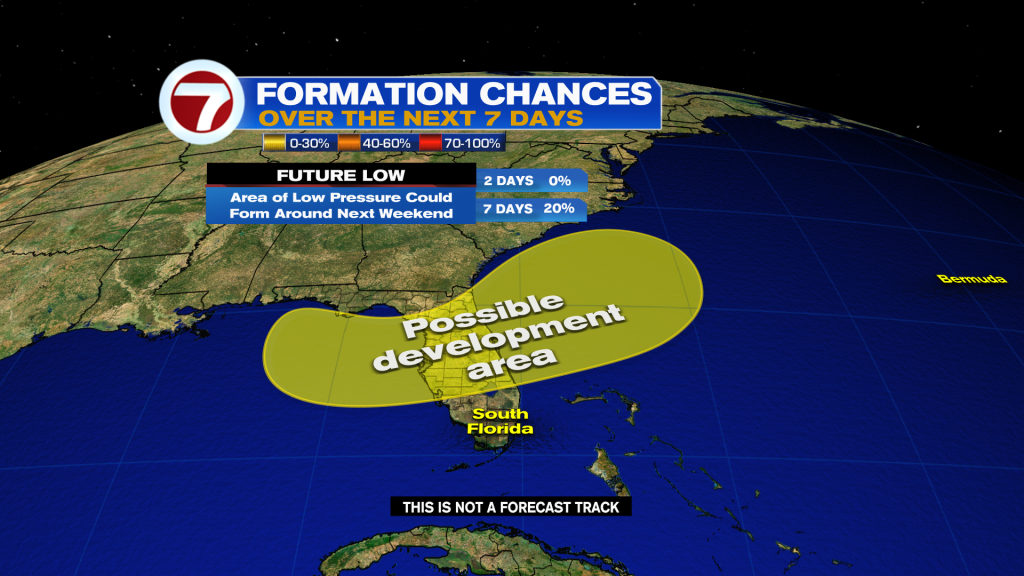 The National Hurricane Center is also monitoring the northeast Gulf and area off the Southeast US for potential tropical or subtropical development around next weekend. The odds of formation are low at this time. It’s a potential system to watch here in South Florida but nothing to worry about. At the very least, it could lead to more unsettled times for the holiday weekend, as previously discussed.