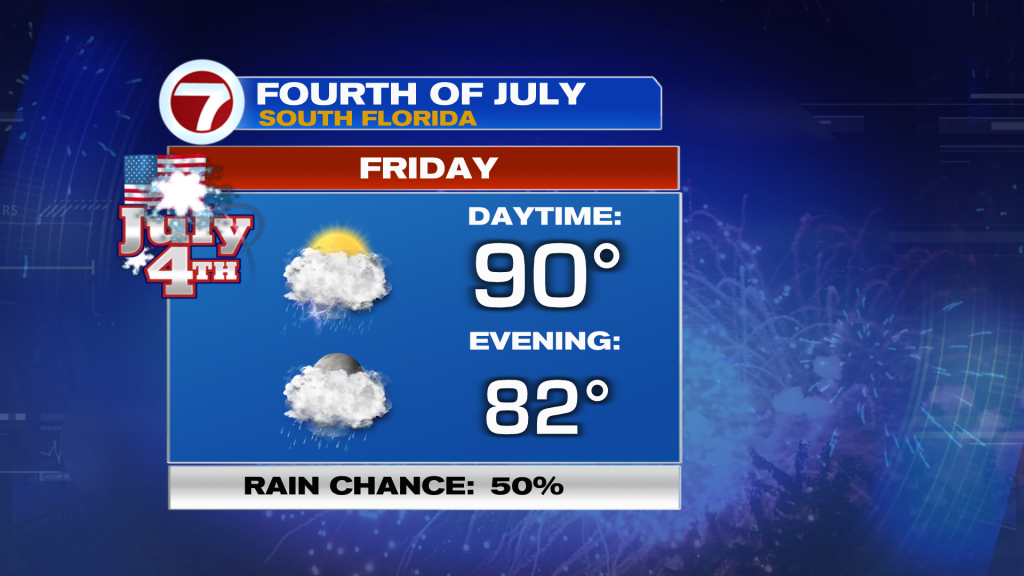 As of now for the Fourth, there is a decent chance for scattered showers and storms but stay tuned as the forecast will likely change!