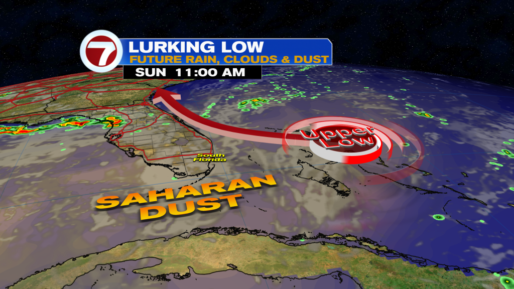 It will also still be hazy with reduced air quality due to Saharan dust. This dust will linger through Monday before thinning out for the most part Tuesday and beyond.