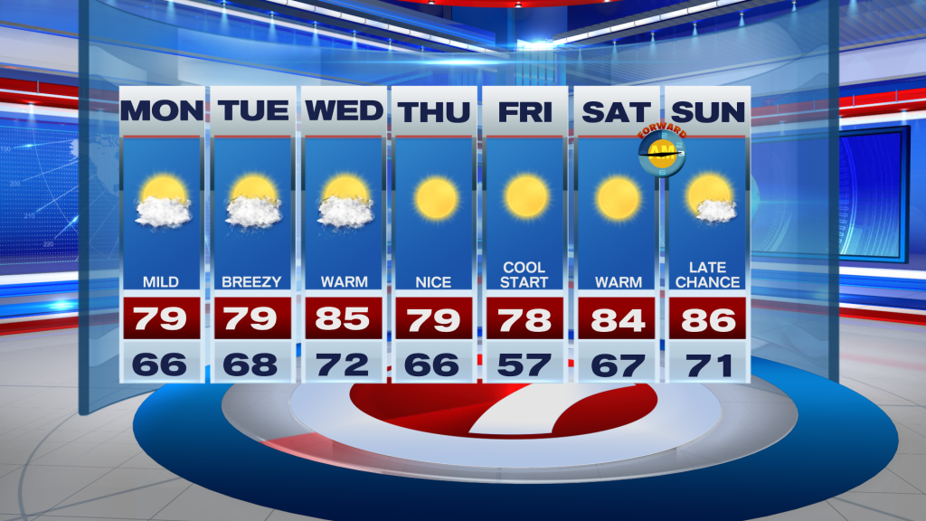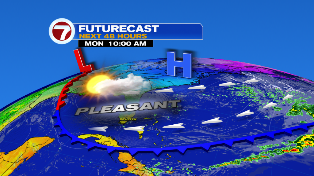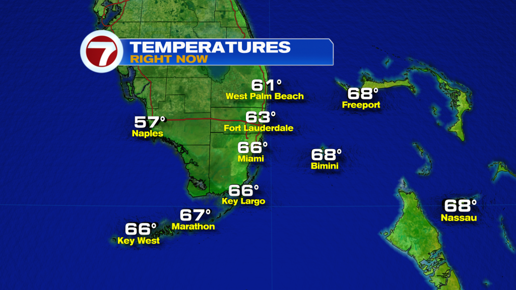 Today will be another nice day for South Florida as an area of high-pressure will keep things quiet and humidity levels remain on the comfortable side. But we will begin to notice some slight changes. Our wind pattern will be veering out of the northeast later today, which will occasionally bring a few clouds in our direction and possibly provide cloudy periods from time to time. And while South Florida should remain mostly dry, a passing sprinkle cannot be ruled out now that our wind pattern will be off the ocean. High temperatures well once again reaching to the upper 70s and near 80° while we notice our breeze beginning to build throughout the day.