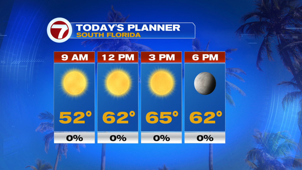 Bundle up! It’s a cold and crisp start to our Thursday across South Florida with widespread low temperatures in the mid to upper 40s and across the Florida Keys in the 50s.