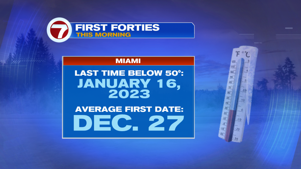 Miami has measured a low of 49F this morning, which marks the first low temperature below 50F in almost 2 years!