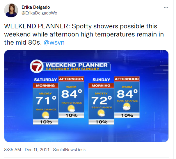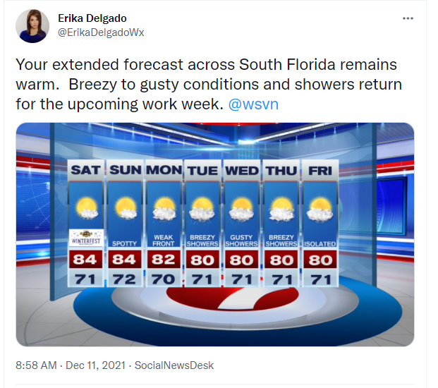 The start of the weekend promises no major change as South Florida will continue to experience unseasonably warm conditions. After starting off with some fog, we can expect a mix of sun and clouds this afternoon while our afternoon high temperatures remain in the 80s. Other than a spotty shower or two, today should be mainly dry across south Florida. Perfect conditions continue into this evening just in time for the Winterfest Boat Parade!