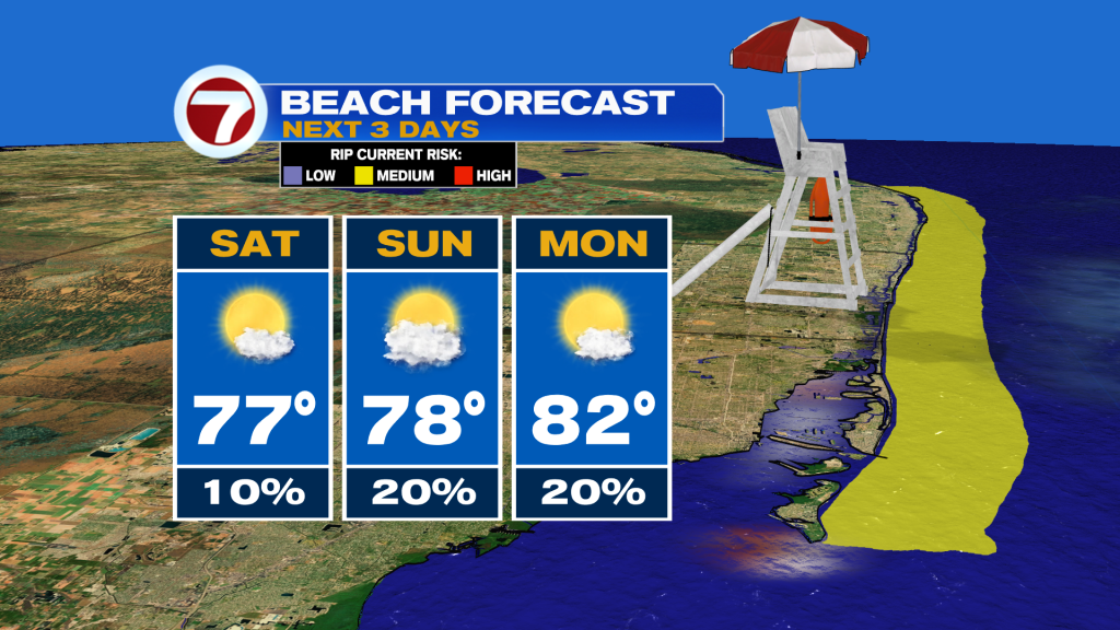 Looking ahead to the rest of the weekend, weather overall looks good for the beach with warm temps and highs near 80. The only thing to keep an eye on is rip currents and windy conditions on Sunday ahead of a front.