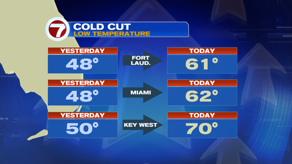 Heading into tonight, temperatures will be even milder with lows in the mid to upper 60s courtesy of an onshore breeze out of the southeast.