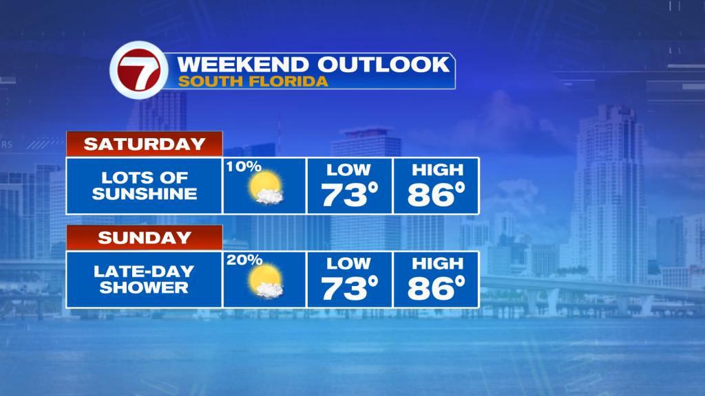 Temperatures will continue to climb — as has been the case throughout this week — over the next few days until a slow-moving front finally moves across South Florida on Monday.