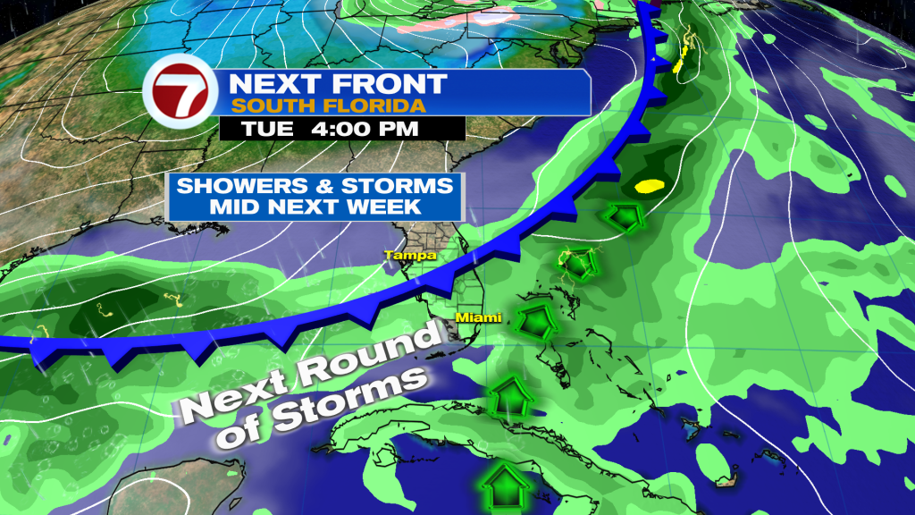 The pattern will then change by the middle of next week as we monitor the next cold front, which should pass through South Florida on Tuesday. This will make for a better chance for showers and storms between Tuesday and Thursday. The model guidance currently is more robust in terms of cooling and drier behind this front, with forecast high temperatures late next week into the low to mid 80s and low temperatures near 70F along with lower humidity. Given it’s still early in the season for fronts to reach South Florida, they do have the tendency to trend weaker.