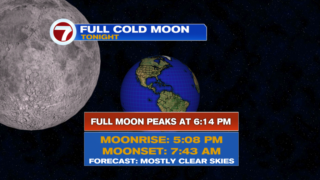 Temperatures tonight will be warmer with widespread readings into the upper 60s to low 70s. That will make for very comfortable conditions to view the final moon of 2025 — the Cold Moon. Skies will be generally clear besides the thin layer of upper-level, wispy clouds that have been present throughout the day Thursday.