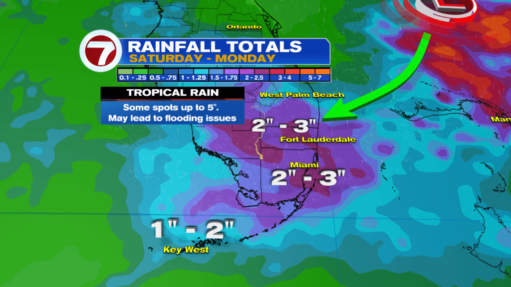Models call for anywhere between 1″-3″ with some spots up to 5″ . With all the recent heavy rain, additional downpours could lead to street flooding.